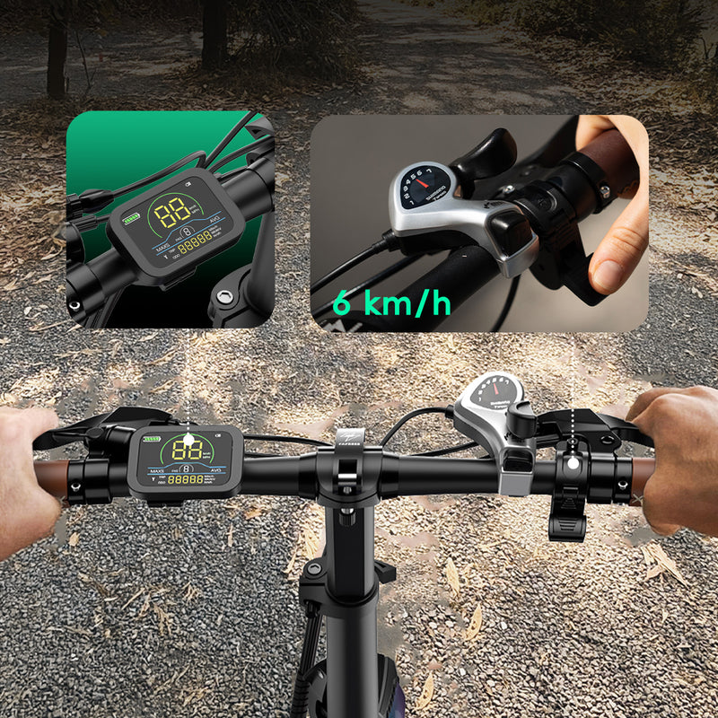 Wodoodporny wyświetlacz LCD: Kolorowy, podświetlany ekran z informacjami o prędkości, baterii i biegu - plus asystent chodzenia dla dodatkowego wsparcia.